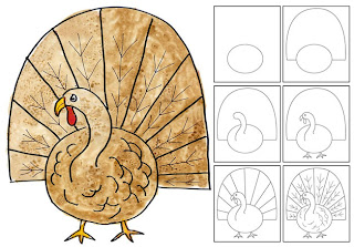 This time of year I am always looking for fun drawings drawings for Thanksgiving, I found this wonderful turkey at Art Projects for Kids. This turkey drawing is a great starting point.
