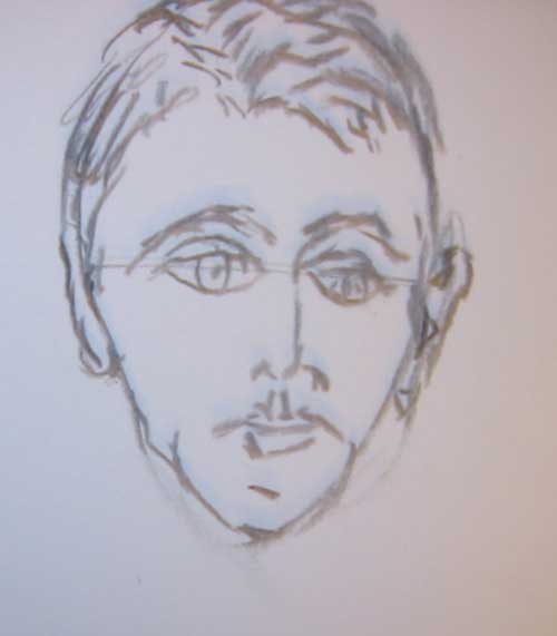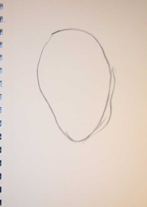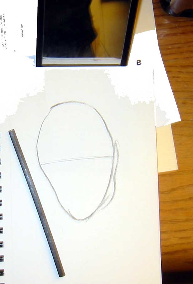 Step #1: Use a small hand mirror or compact mirror to study your subject. Take the charcoal and start with a oval or egg shape.
