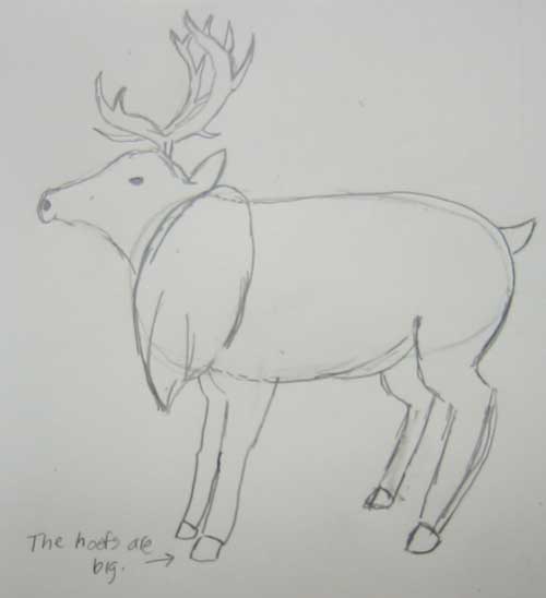 One of my favorite illustrators is Sachiko Umoto, who has several great books on plants, people and animals. I am using her wonderful reindeer for our inspiration. Both male and female reindeer have antlers, which they shed every winter by the males and the spring by the females.
