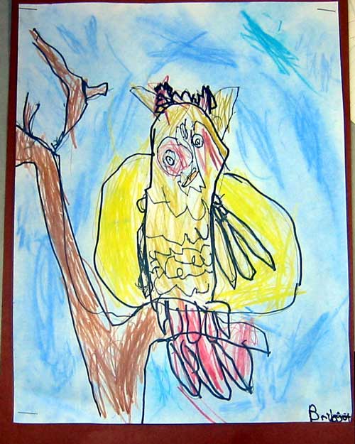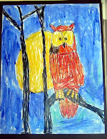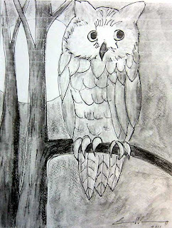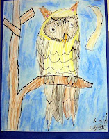 One the favorite birds for students to draw is the owl, in this lesson we are inspired by wildlife artist Robert Bateman. Great Horned Owl does not really have “horns” but tall tufts of feathers. When disturbed, the owl raises the tufts and sits very still so it can blend into the tree bark and hide. When it flies, the tufts are flat against the head. This owl has a wingspan of 3 feet but only weighs 9 ounces! Their lifespan is 25-30 years. I like to use watercolor materials for this project.