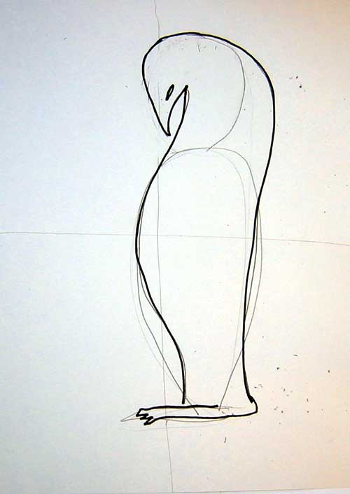 We had a drawing workshop this week on penguins and I wanted share one of the projects with you. The Emperor Penguin is the tallest and heaviest of all living penguin species and is endemic to Antarctica. The male and female are similar in plumage and size, reaching 122 cm (48 in) in height and weighing anywhere from 22 to 45 kg (49 to 99 lb). The dorsal side and head are black and sharply delineated from the white belly, pale-yellow breast and bright-yellow ear patches. Like all penguins it is flightless, with a streamlined body, and wings stiffened and flattened into flippers for a marine habitat.