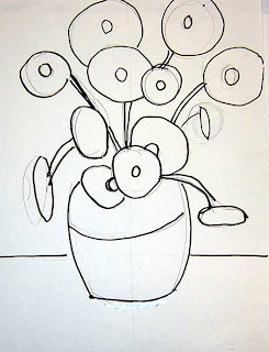 Step #2: Draw in circles and ovals for your sunflowers as shown below (Van Gogh sunflower works had from 9 to 15 flowers in the vase).