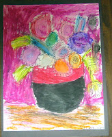 Step #3: Draw in flower petals, stems and leaves with the materials of your choice. Have fun with color and experiment.