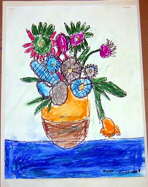 Step #3: Draw in flower petals, stems and leaves with the materials of your choice. Have fun with color and experiment.