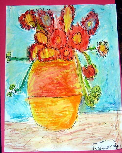 Vincent Van Gogh (1853- 1890) was son of a Dutch pastor in The Netherlands. He was a Dutch Post-Impressionist painter whose work had a far-reaching influence on 20th century art for its vivid colors and emotional impact. Little appreciated during his lifetime, his fame grew in the years after his death. Today, he is widely regarded as one of history’s greatest painters and an important contributor to the foundations of modern art. Most of his best-known works were produced during his final two years in Arles France. He painted several studies of the Sunflowers as a deliberate experiment in color. Our project uses one of Van Gogh Sunflower still life to work on the elements of composition and color.