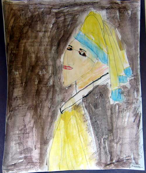 I always try to introduce different artist for students to learn about portraits. Recently we used the Dutch master Vermeer as our Inspiration. Johannes Vermeer (1632 – 1675) was a Dutch painter who specialized in exquisite, domestic interior scenes of middle class life. Vermeer was a moderately successful provincial genre painter in his lifetime. He seems never to have been particularly wealthy, leaving his wife and children in debt at his death, perhaps because he produced relatively few paintings. Vermeer worked slowly and with great care, using bright colours and sometimes expensive pigments, with a preference for cornflower blue and yellow. He is particularly renowned for his masterly treatment and use of light in his work. We use his most famous painting “Girl with Pearl Earring” (1665-1666) for our project.