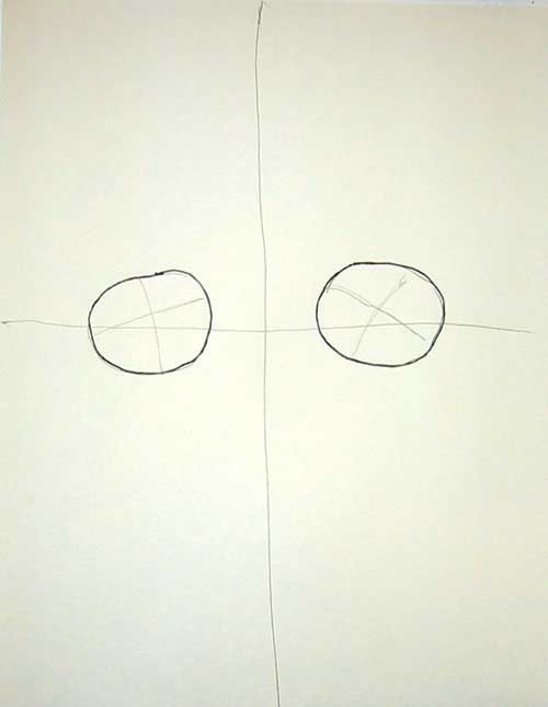Step #1: Draw some light guidelines across center and down the middle of the paper. Draw two circles through the center guideline for the cats heads.