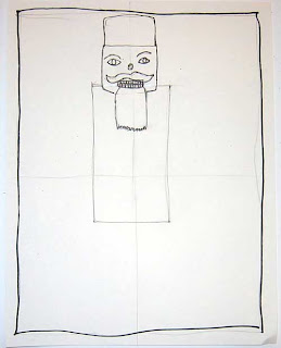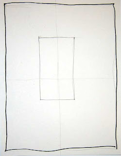 Step #1: Draw light guidelines across the middle and down the center. Draw a border around the edge of your paper. Draw a rectangle near center of the page as shown below for the body.
