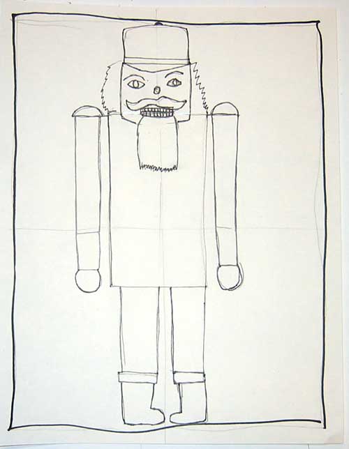 Step #5: Draw in the details of the Nutcrackers jacket, boots, hands, hat and more. Choose your colors and materials to finish your project.