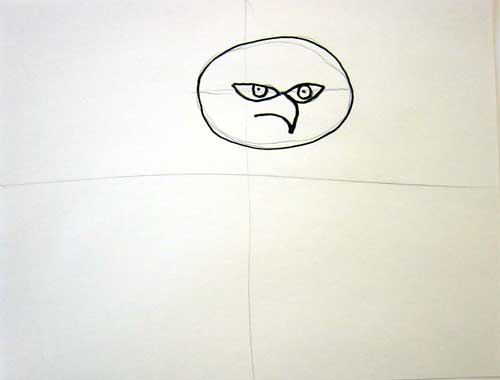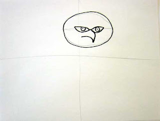 Step #1: Draw a oval for he head, then draw eyes and beak.