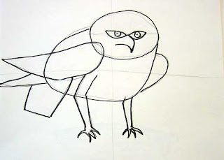Step #4: Draw the perch for the owl stand on. Then draw in the details for the feathers. Picasso used line very effectively to create the design of the owls feathers.