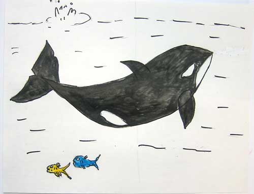 Step #3: Draw the pectoral, dorsal and flukes (tail) fins.