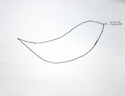 Step #1: Draw the whale body with a pointed nose and large body as shown below.