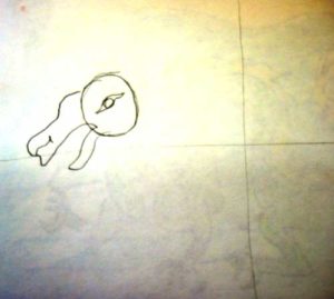 Step #1: Draw light guidelines down the center and across the middle of the paper. Draw a circle for the dragon’s head.