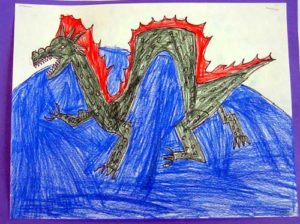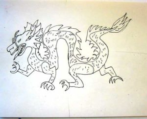 Materials: heavyweight sketching paper, sketching pencil, sharpie, and your choice of materials to finish the dragon.