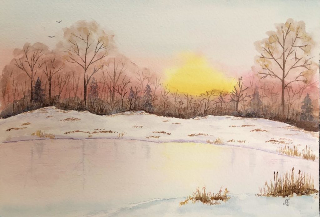 Anita is greatly inspired by nature, and it shows in her watercolor paintings. She is inspired by the artist, Claude Monet. She likes that he captures the impressions of what he sees but not all the details. She also enjoys the artist of the Hudson River School. Moving forward in the future, Anita told me she wanted to concentrate on paintings with less details and maybe a bit more abstract. She said “ I want to do more of the impression of what I see.”