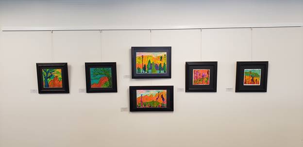 Rumriver Art Center has art on display at Allina’s Customer Experience Center in Coon Rapids, MN (8880 Evergreen Blvd, Coon Rapids, MN 55433). The current gallery show features the art of Larry Weinberg. He has a variety of fluid acrylic paintings on display. Check out some of his work below!