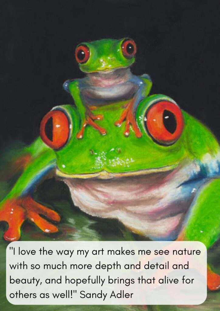 The 21 Step Gallery of Rumriver Art Center proudly presents Celebrate Creation, by artist and educator Sandy Adler. Sandy’s work celebrates the beauty and wonder of nature and life through her realistic oil pastel and watercolor paintings. See the extraordinary in simple scenes, transformed into vibrant masterpieces. Sandy’s meticulous attention to detail and use of color and composition captures the splendor of nature.