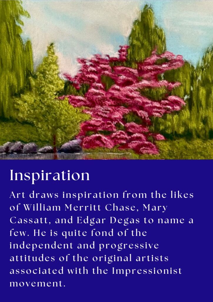 Art Jacobs is a pastel artist who invites viewers to experience nature’s beauty through vivid soft pastel colors and expressive artwork. His artwork pulls viewers into the stunning colors and details of landscapes and still lifes. View the e-gallery brochure below to learn about Art and enjoy his captivating artwork.