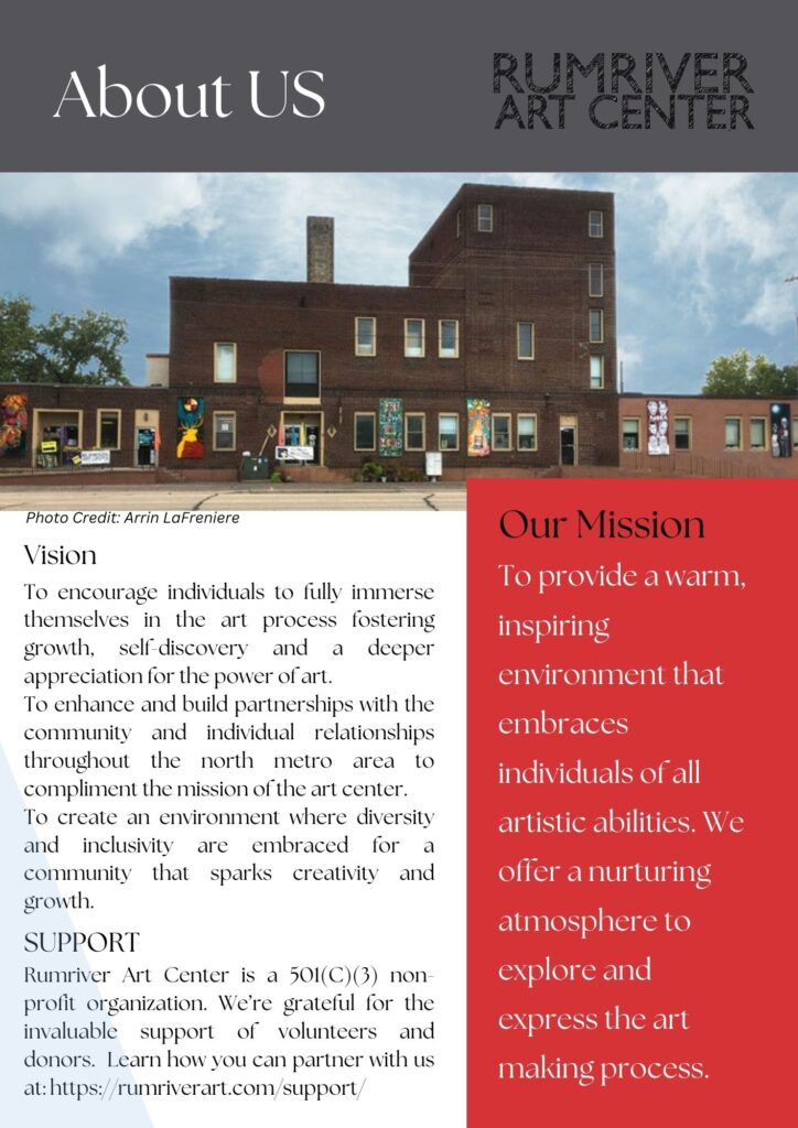 Rumriver Art Center is dedicated to providing a platform for artists to showcase their work, offering them the opportunity to share their unique voices. By supporting Rumriver Art Center you’re promoting a vibrant and creative art community. Discover ways to empower artists and community at: https://rumriverart.com/support/