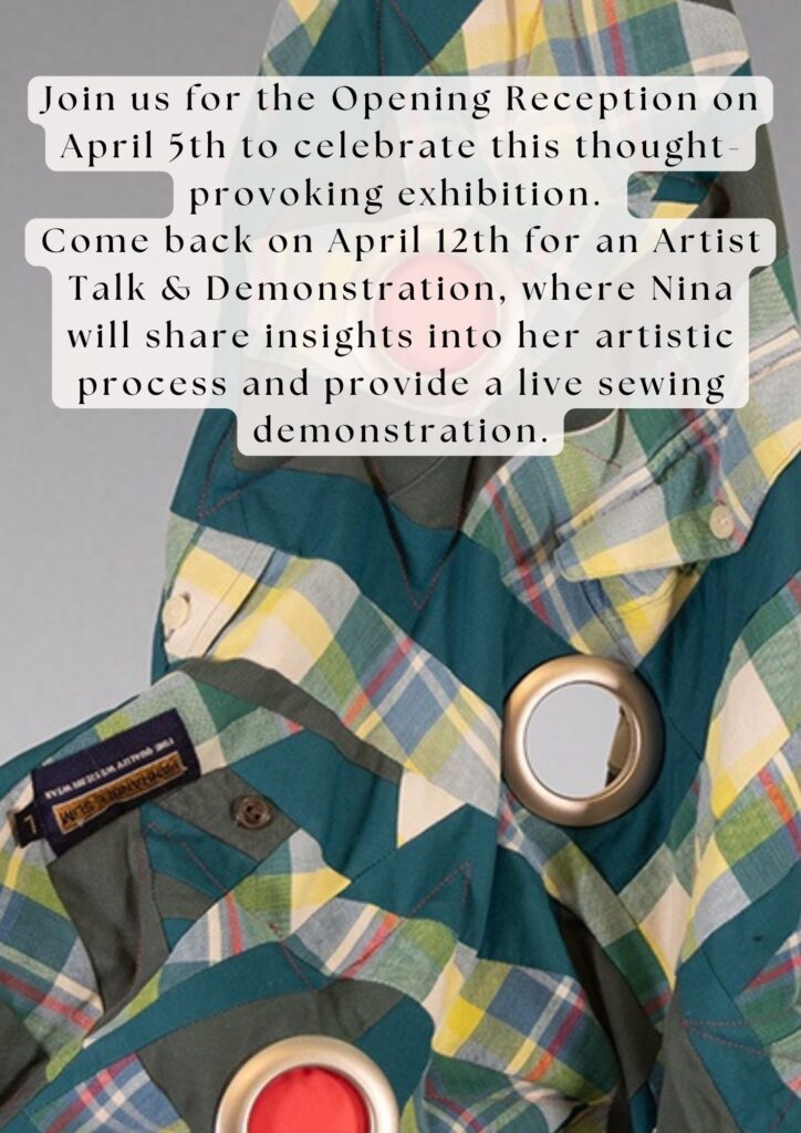 The Jan Johansen Gallery at Rumriver Art Center invites you to experience mask/UNmask, a thought-provoking exhibition by textile artist Nina Robinson. Join us for the opening reception on April 5th from 2–4 PM. Then, on April 12th at 3 PM, Robinson will share her creative journey and demonstrate her unique sewing techniques in an artist talk.