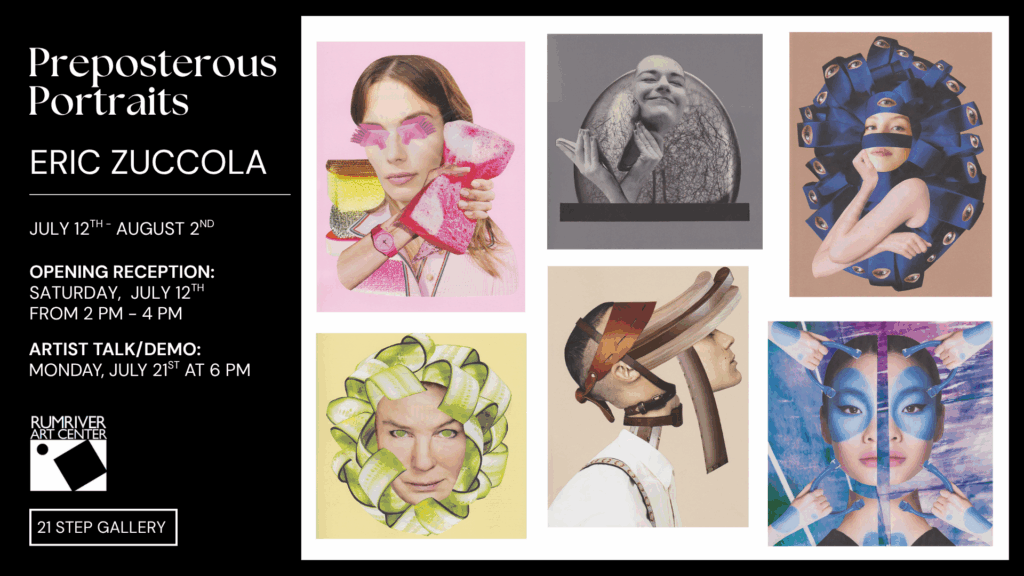 Rumriver Art Center’s 21 Step Gallery is proud to present: Preposterous Portraits. Join us for this solo exhibition by Minneapolis-based mixed media artist Eric Zuccola.