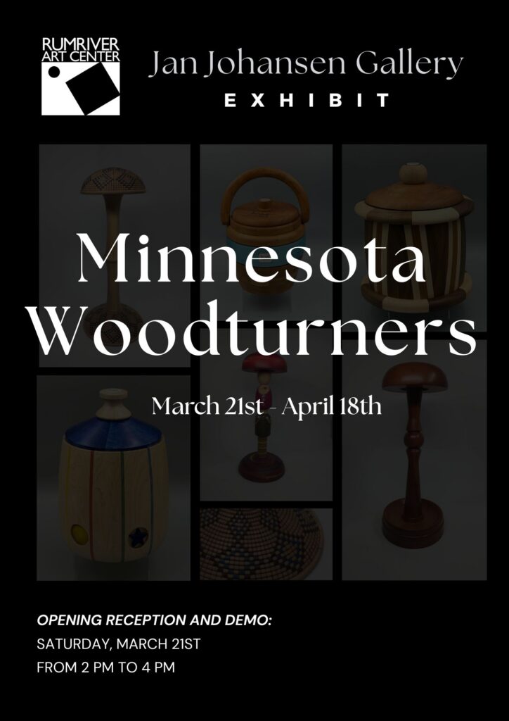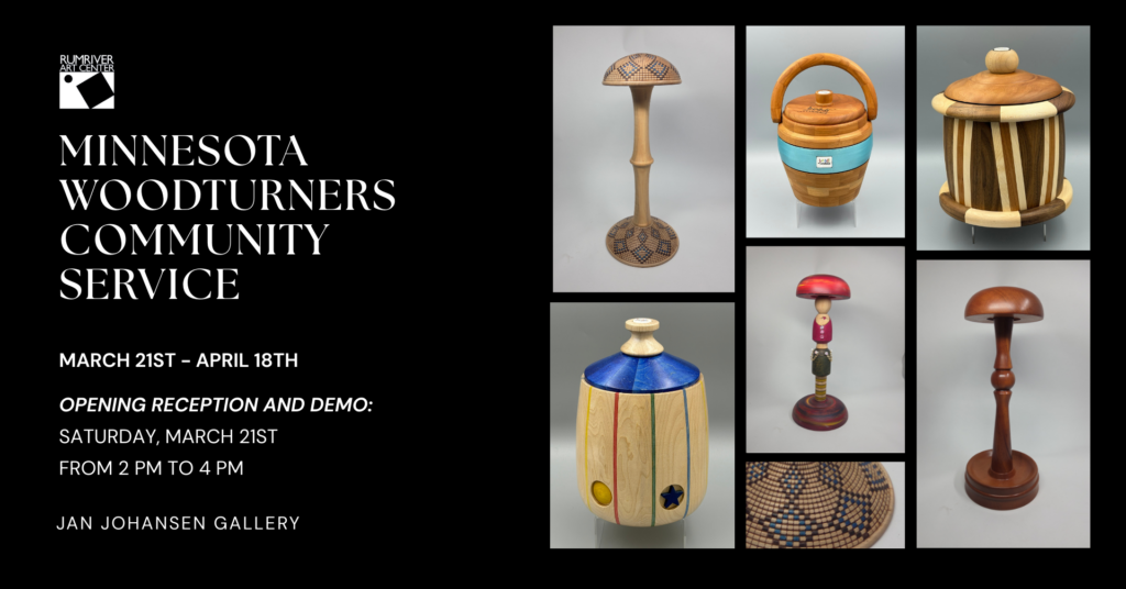 Rumriver Art Center is pleased to present a new exhibition in the Jan Johansen Gallery: Minnesota Woodturners Community Service, featuring work by members of the Minnesota Woodturners Association (MWA). This Minnesota-based nonprofit brings together woodturners from across the Twin Cities region to celebrate woodturning as both a craft and an art form. The exhibition highlights pieces created through the organization’s community service initiatives, reflecting the generosity, skill, and creativity of its members.