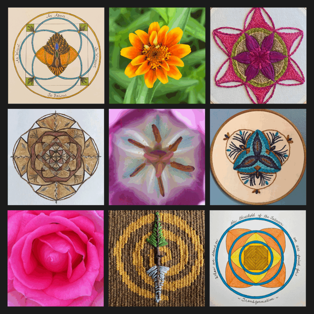 The Sacred Patterns in Nature is the visual story of her journey with the sacred geometric patterns found in Nature and their Divine connection through photography, drawings, words, embroidery, and woven tapestry. These simple geometric shapes that are found all throughout Nature are the same shapes that are found within our own bodies which are the divine patterns from the Creator. Incorporating these shapes into her creative works, along with intentional healing energies, allows these healing energies to radiate out from the work and into the viewer. As a spiritual artist, Klatt no longer creates art for her own expression, but rather in service to the Divine Creator and for the healing of humanity.
