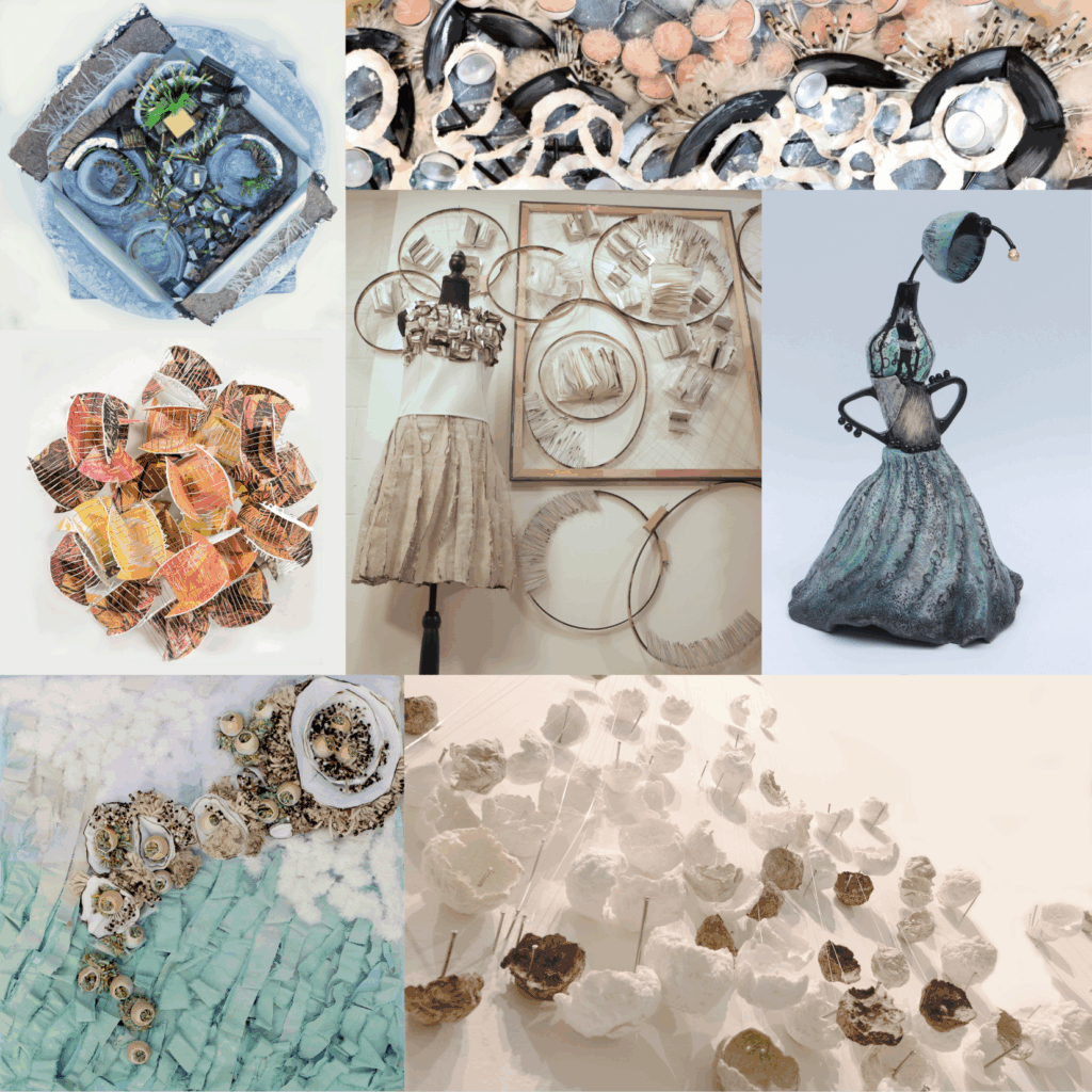 The Jan Johansen Gallery at Rumriver Art Center is excited to announce the opening of a new art exhibition. On Saturday, February 7th, from 2 pm – 4pm Rumriver Art Center will be hosting an opening reception for Aura, by Kat (Katrina) Barnett and her daughter Catrielle Barnett. Aura is a multifaceted exploration of form, material reuse, and intergenerational creativity. Together they bring a collective approach to sculptural work, printmaking, jewelry, fiber art, ceramics, and wearable art.