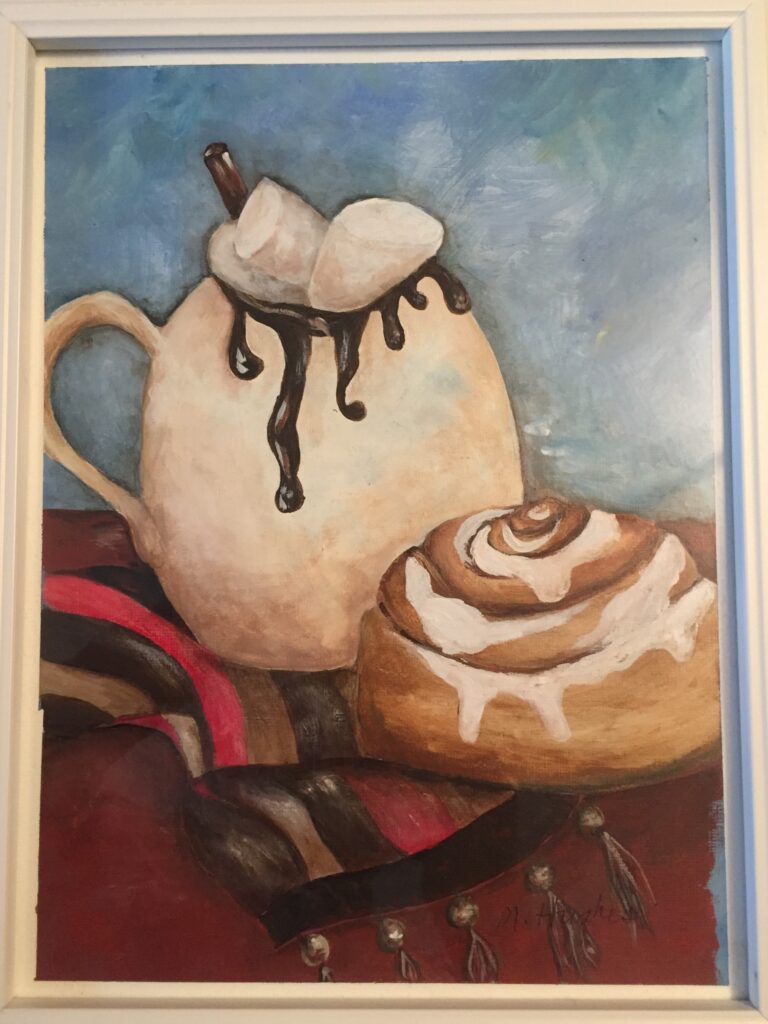 “Mona loved to paint, that doesn’t mean it was her absolute favorite part of RRAC… she took a variety of classes including mixed media, watercolor, acrylic and printing. It was a great place for her after retirement” – John (Mona’s husband)